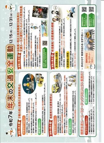2025.12.01 交通安全協会お知らせ 年末の交通安全運動№2 同じカテゴリの新着記事 年末の交通安全運動№1 免許窓口にお面が登場 軽井沢交通安全協会定期総会を開催 交通安全祈願祭・殉職警察官慰霊祭を開催 「シン・あさまマン」誕生 職場ぐるみで飲酒運転を撲滅しましょう 令和7年オリジナルカレンダー FM軽井沢編集による交通安全広報 高原の軽井沢・交通安全の花 自転車のヘルメット着用努力義務化